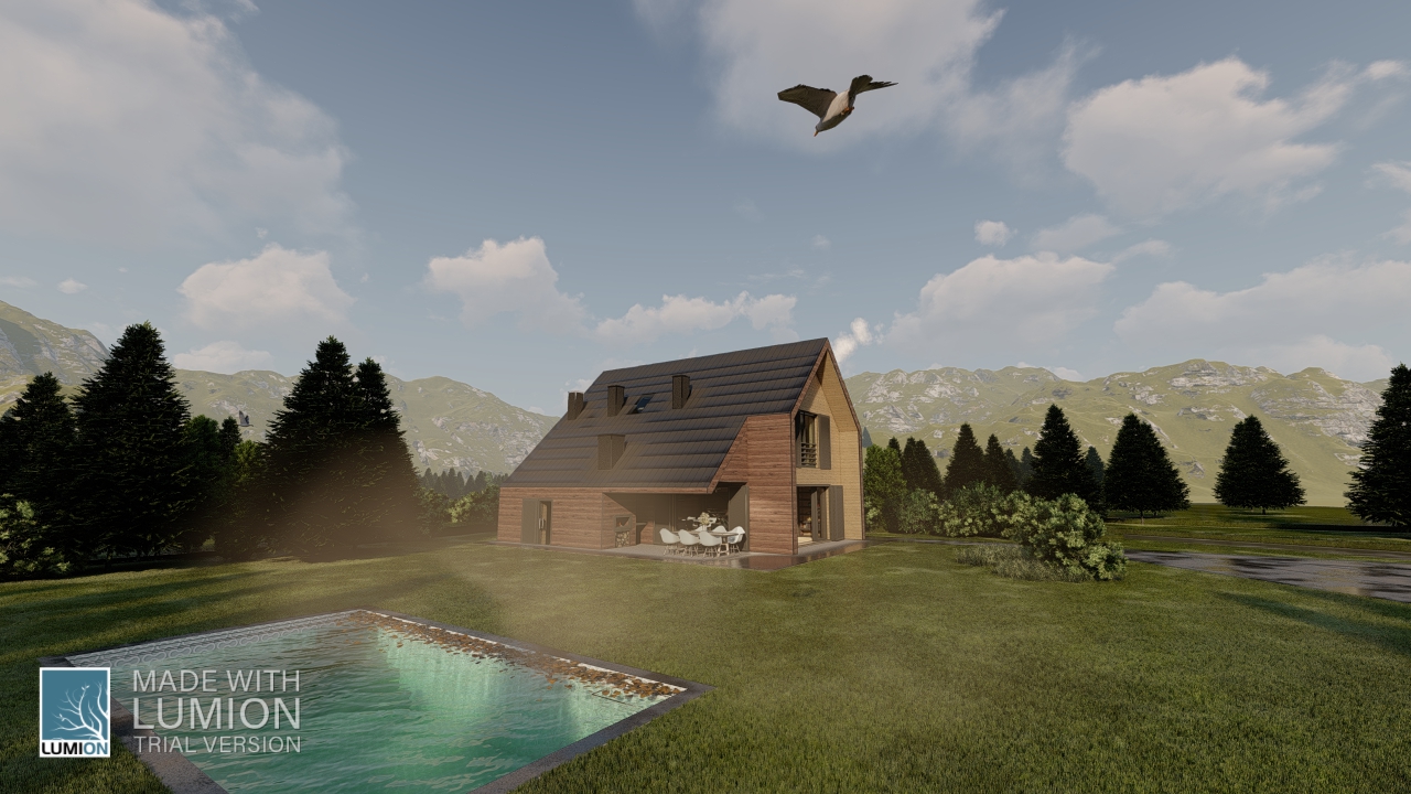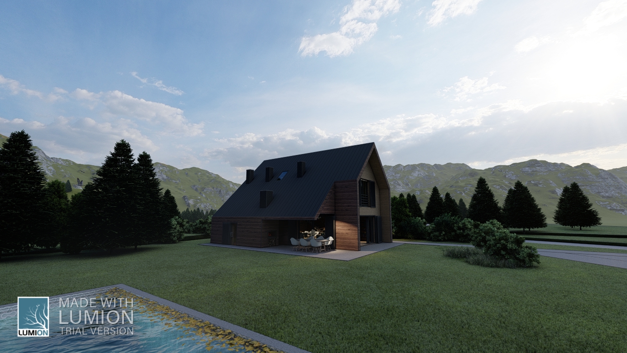 Preliminary, main and detailed design of a holiday home with a swimming pool in Delnice. Building permit obtained.