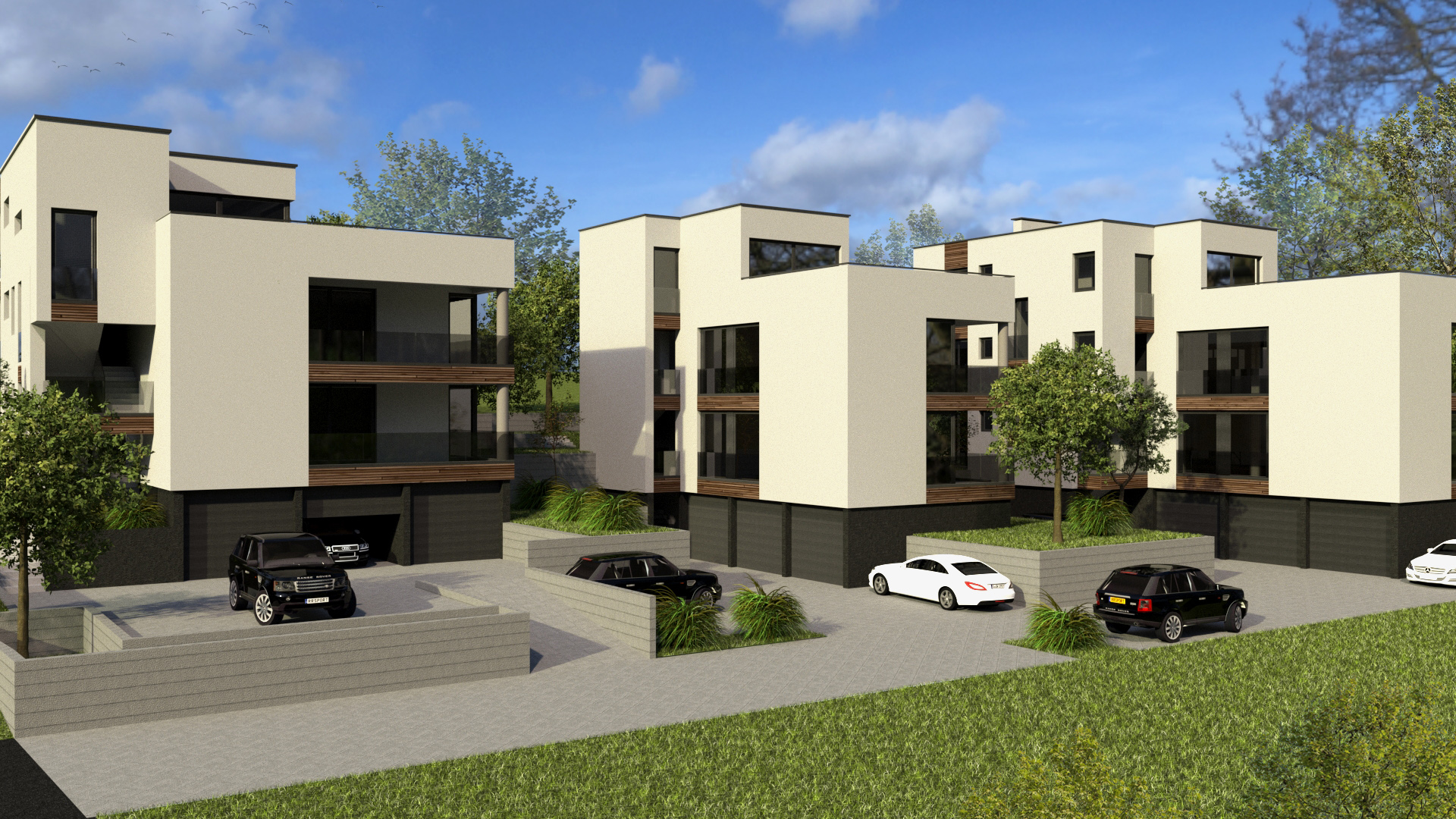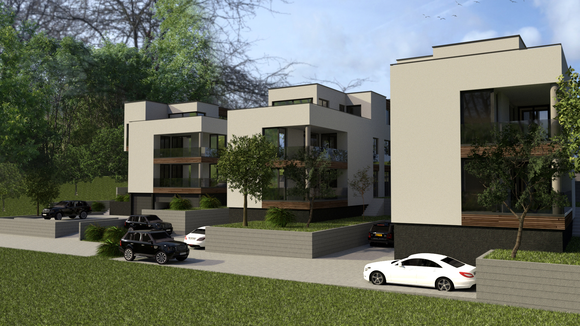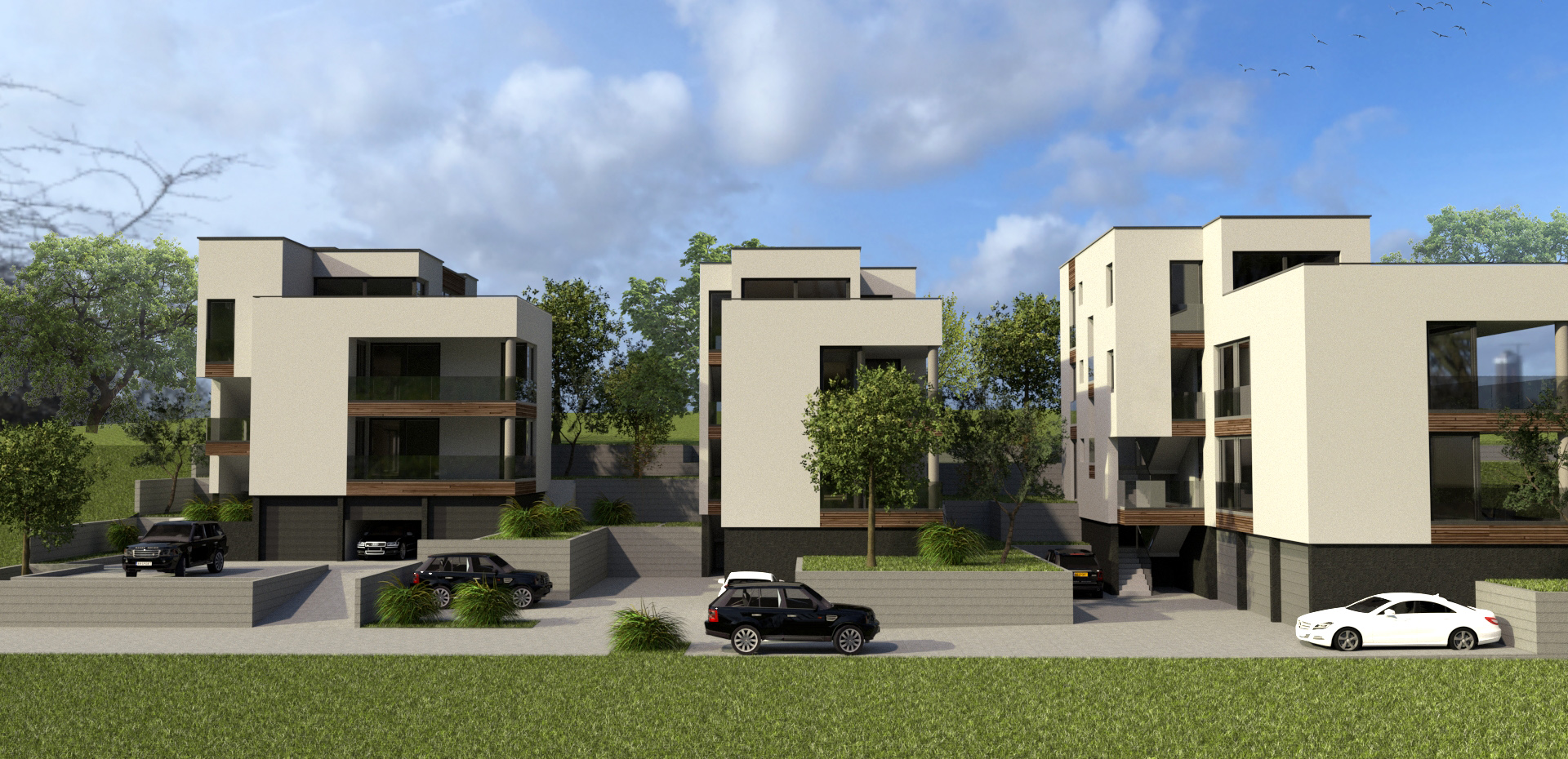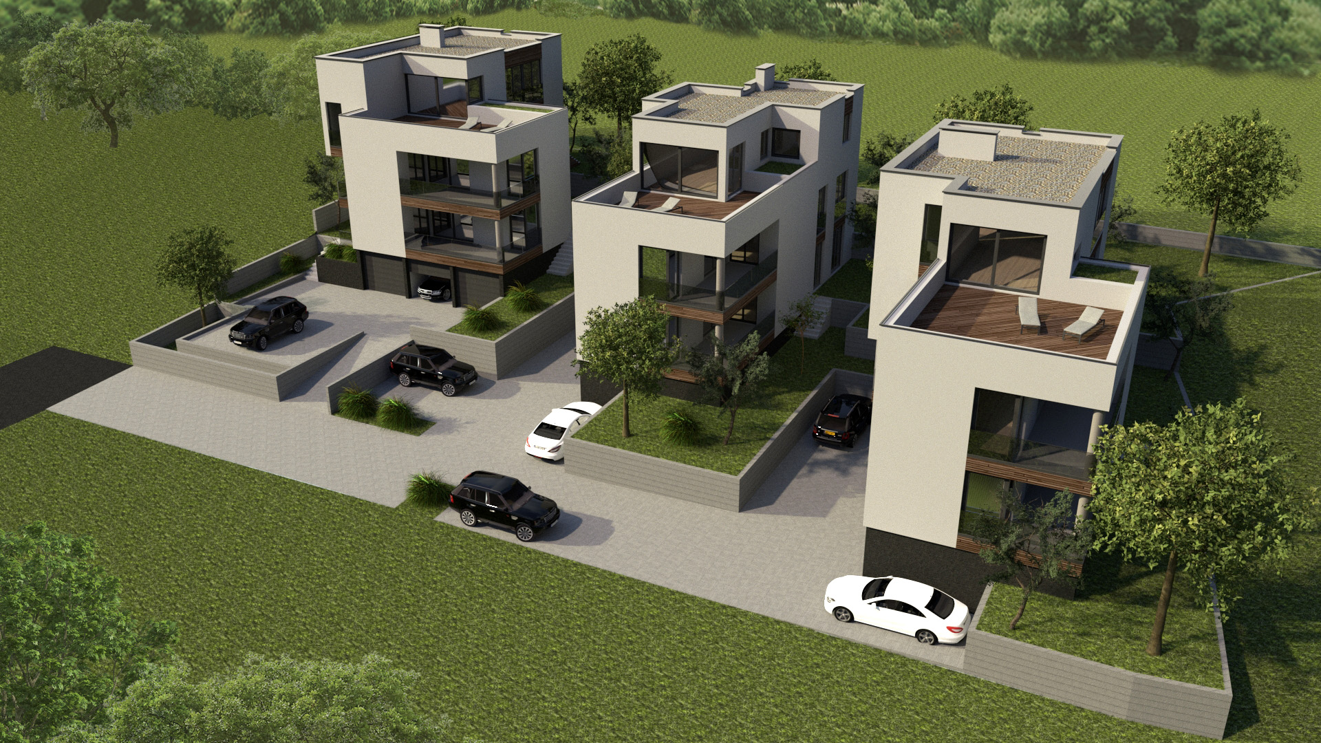 Conceptual, main and detailed design for 3 urban villas in Zagreb, Gornji Stenjevec. 3D.