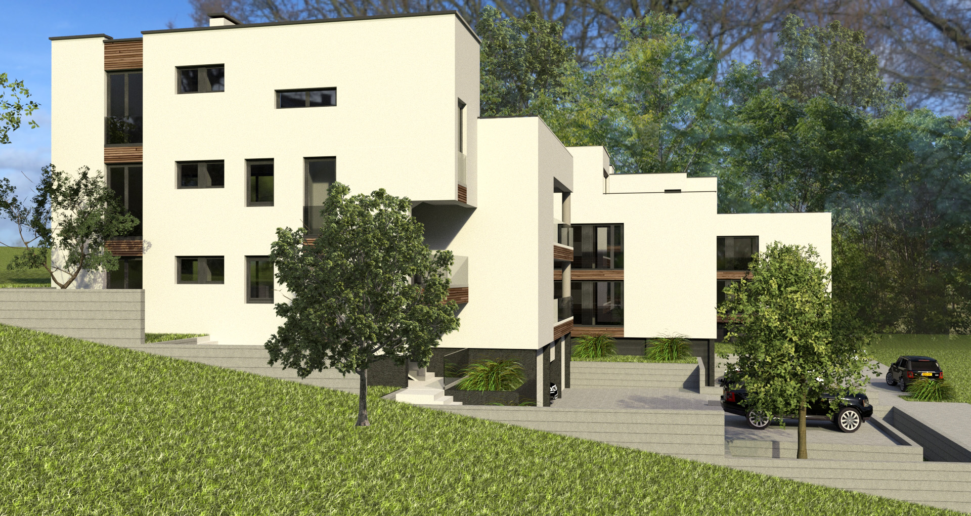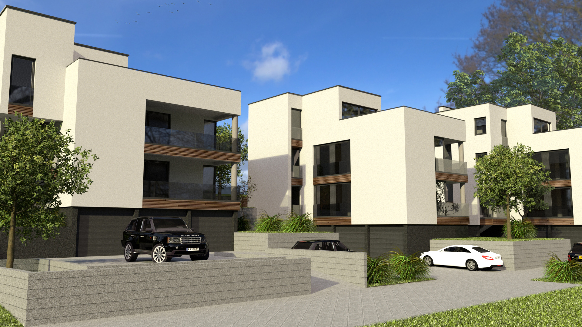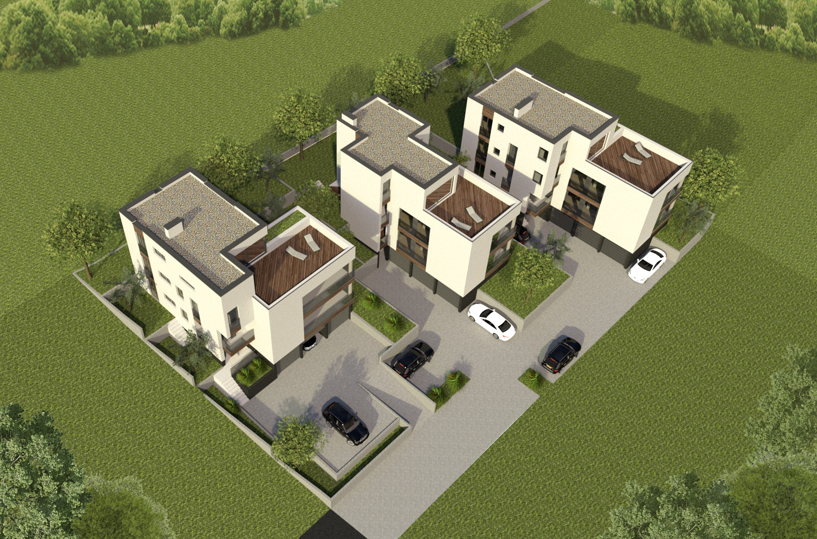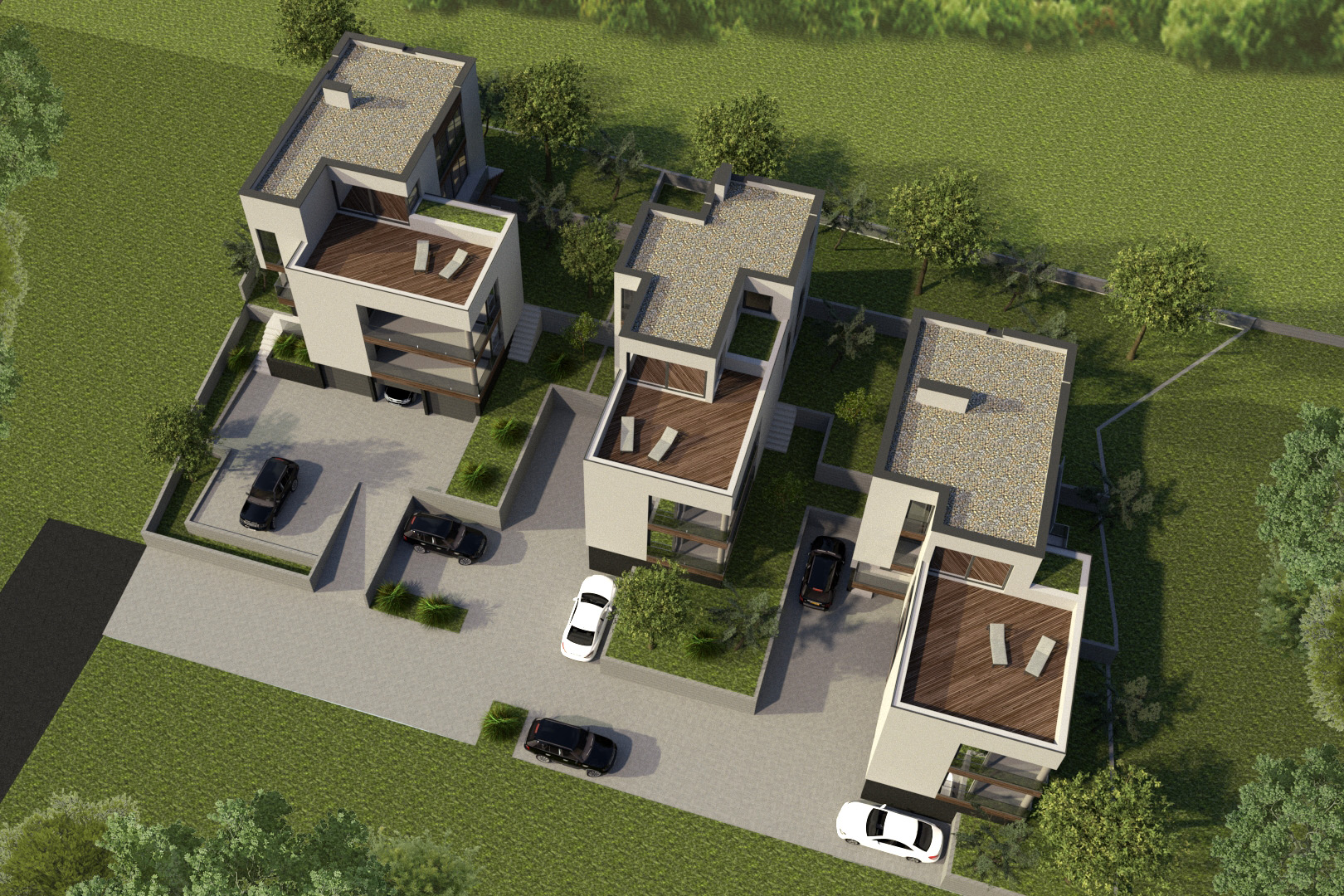 Conceptual, main and detailed design for 3 urban villas in Zagreb, Gornji Stenjevec. 3D.